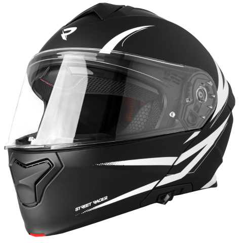 Street Racer Fury felnyitható motoros bukósisak matt fekete-fehér