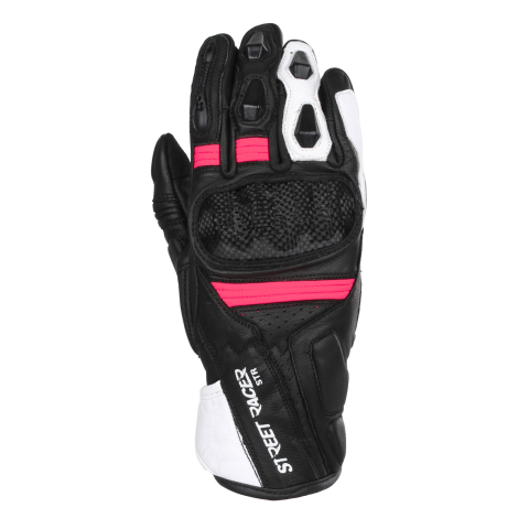 Street Racer STR női motoros kesztyű fekete-fehér-rózsaszín motoros kesztyű 1 kép