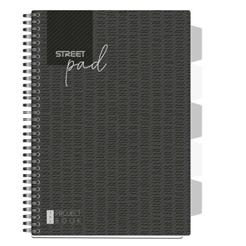 2 kép Street Spirálfüzet STREET Pad regiszteres A/4 vonalas 100 lapos fekete