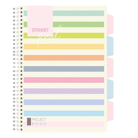1 kép Street Spirálfüzet STREET Pad regiszteres A/4 vonalas 100 lapos világos csíkos