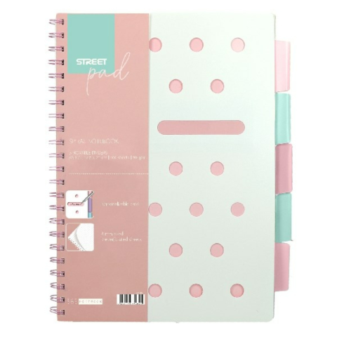 1 kép Street Spirálfüzet STREET Pad regiszteres A/5 kockás 100 lapos pasztell rózsaszín