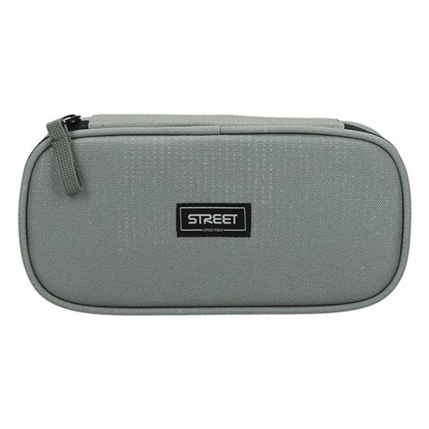 Belül textillel bevont merev lapokkal, gumis kialakítással az írószerek tárolásához, és egy cipzáras belső zsebbel.
