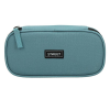 Belül textillel bevont merev lapokkal, gumis kialakítással az írószerek tárolásához, és egy cipzáras belső zsebbel.