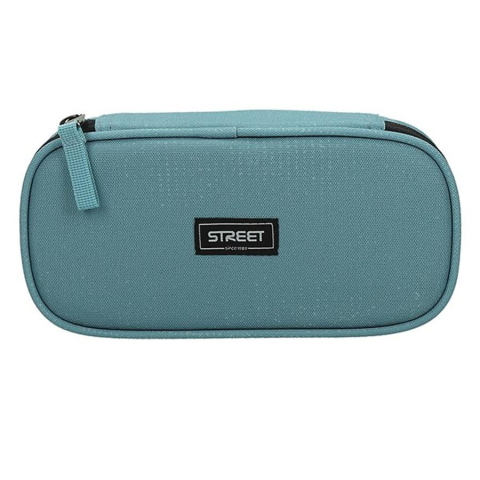 Belül textillel bevont merev lapokkal, gumis kialakítással az írószerek tárolásához, és egy cipzáras belső zsebbel.
