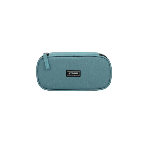 Belül textillel bevont merev lapokkal, gumis kialakítással az írószerek tárolásához, és egy cipzáras belső zsebbel.