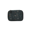 Belül textillel bevont merev lapokkal, gumis kialakítással az írószerek tárolásához, és egy cipzáras belső zsebbel.