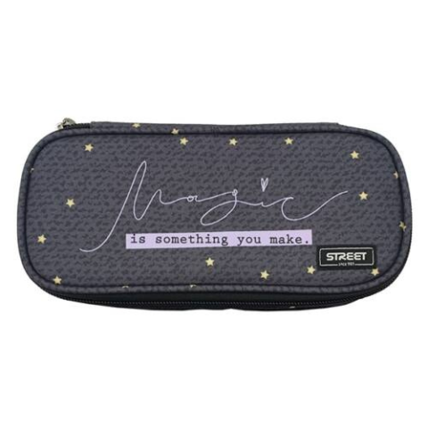 Többszintes, töltetlen, cipzáras tolltartó. Belül textillel bevont merev lapokkal, gumis kialakítással az írószerek tárolásához és egy cipzáras belső zsebbel.