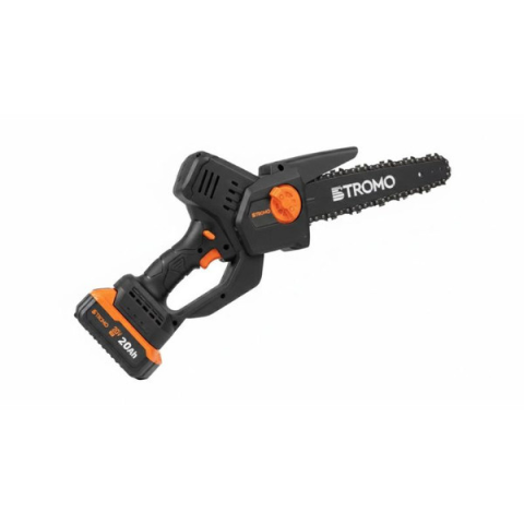 STROMO AAS22 Akkumulátoros Mini Láncfűrész AAS22-1Kompakt erőgép a kerti munkákhoz: Prémium technológia, egyszerű kezelhetőség.A STROMO AAS22 modellje a modern technológiát hozza el a hobbikertészek kezébe. Ez a verzió egy szénkefe nélküli (Brushless) motorral szerelt, nagy teljesítményű, egykezes láncfűrész, amely a drágább gépekre jellemző automatikus láncolajozó rendszerrel is rendelkezik. A csomag mindent tartalmaz, ami az azonnali munkakezdéshez szükséges