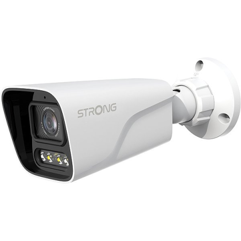 IP kamera - beltéri és kültéri, max. videófelbontás 2880 × 1620 px, színes éjjellátás 15 m maximális hatótávval, 112° betekintési szög, fix objektív, mozgás, behatolás, személy(ek) és autók érzékelése, beépített mikrofon és beépített hangszóró, értesítés mobilra, fény riasztás, cloud tárhely, RJ 45 LAN interfész, ethernet csatlakozás, tápellátása hálózati, kommunikáció Vision by STRONG segítségével, szerelési anyag a csomag része, méretei 9,5