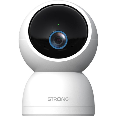 IP kamera - beltéri, max. videófelbontás 2880 × 1620 px, klasszikus éjjellátás 10 m maximális hatótávval, 360° betekintési szög, motoros forgás, fix objektív, mozgás és személy(ek) érzékelése, beépített mikrofon, beépített hangszóró, hangfelvétel és kétirányú hang, értesítés mobilra, hang riasztás, SD és cloud tárhely, WiFi 2,4 GHz és WiFi 5 GHz csatlakozás, tápellátása hálózati, kommunikáció Vision by STRONG segítségével, szerelési anyag és t
