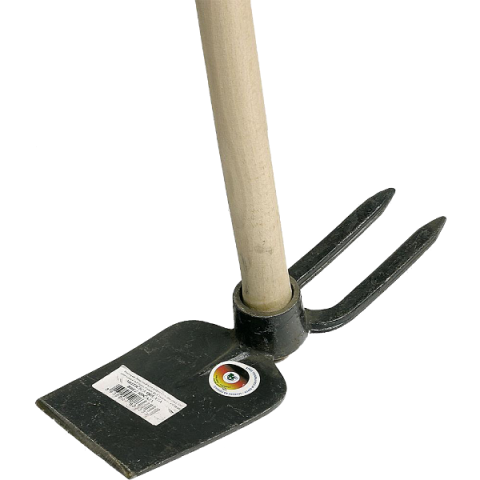Kötött, köves talajon való gyomláláshoz, mulcs forgatásához, gyökerek kiszedéséhez. Egyik oldalán hagyományos kaparész található, a másikon talajlazító villa.