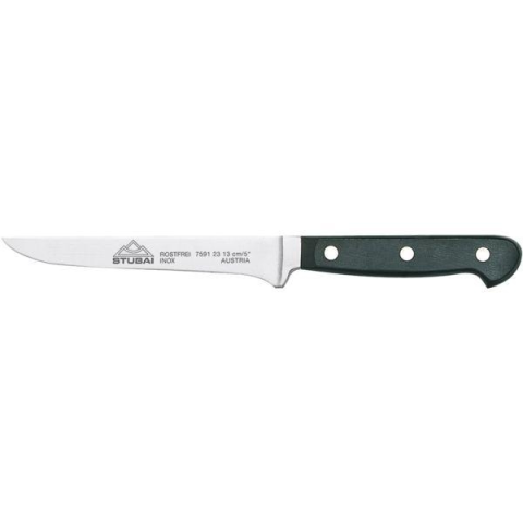 Stubai kovácsolt csontozókés fekete markolattal és 13 cm hosszú pengével. Króm-molibdén ötvözetű rozsdamentes acélból készült. Ideális professzionális és otthoni használatra. Megkönnyíti a hús csontoktól való elválasztását.