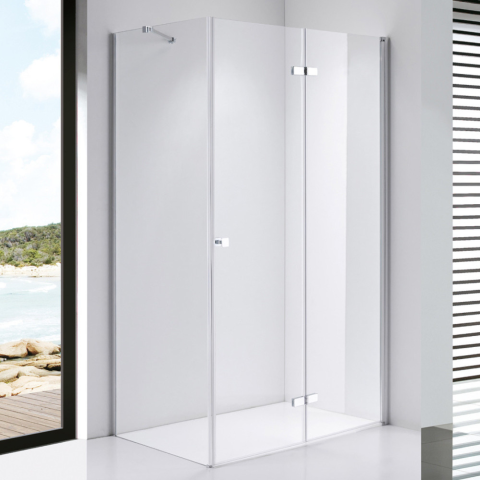 1 kép Stuxi Verona 90x80 aszimmetrikus csuklóajtós zuhanykabin 6 mm vízlepergető biztonsági üveggel, króm