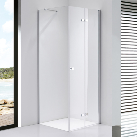 1 kép Stuxi Verona 90x90 cm szögletes csuklóajtós zuhanykabin, 6 mm vízlepergető üveggel, króm elemekkel