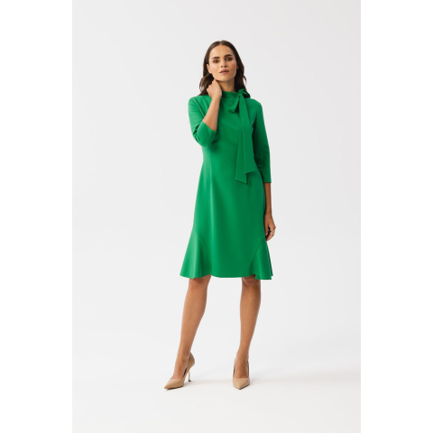 Hétköznapi Ruha Stylove MM-185130. Színe: ZöldEz a dekoratív csontozással és állógallérral ellátott, bájos ruha számos alkalomra tökéletes választás. A 3/4-es ujjak könnyedséget kölcsönöznek, a térdig érő hossz pedig sokoldalúvá teszi. Hátul fodor található, ami tovább növeli a báját. A ruha nem bélelt, de a hátul található fedett cipzárnak köszönhetően könnyen felvehető. Ezt a ruhát Lengyelországban tervezték