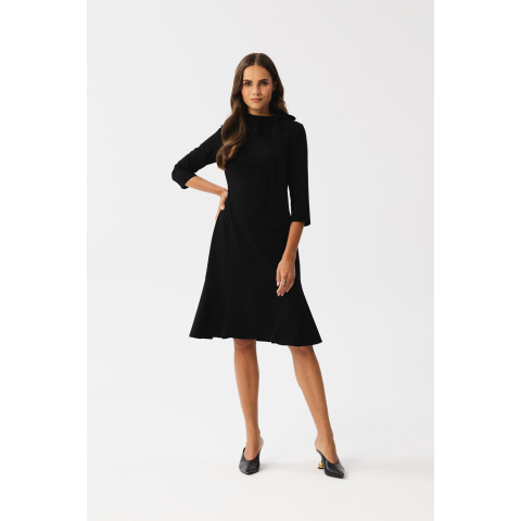 Hétköznapi Ruha Stylove MM-185132. Színe: FeketeEz a dekoratív csontozással és állógallérral ellátott, bájos ruha számos alkalomra tökéletes választás. A 3/4-es ujjak könnyedséget kölcsönöznek, a térdig érő hossz pedig sokoldalúvá teszi. Hátul fodor található, ami tovább növeli a báját. A ruha nem bélelt, de a hátul található fedett cipzárnak köszönhetően könnyen felvehető. Ezt a ruhát Lengyelországban tervezték