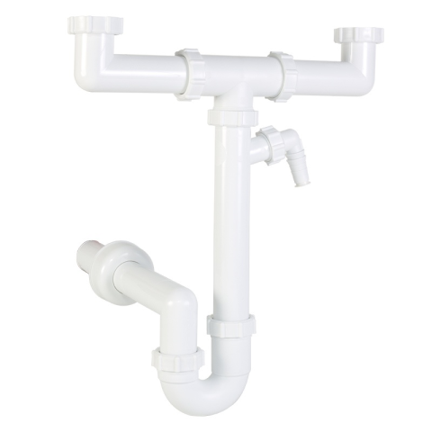 1 kép Styron 639-3 kétmedencés csőszifon 40 mm-es elfolyással, mosogatógép csatlakozással