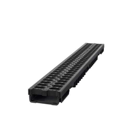Az STY-904-M cikkszámú alacsony kültéri vízelvezető folyóka kiválóan alkalmas kertek, járdák és egyéb kültéri felületek esővíz-elvezetésére. Ez a 100 cm hosszú, 13 cm széles és 5,5 cm magas vízelvezető egység strapabíró műanyagból készült, így könnyű, de