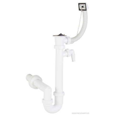1 kép Styron Csőszifon túlfolyóval, leeresztőszeleppel, mosogatógép csatlakozóval, Ø40 mm-es elfolyással