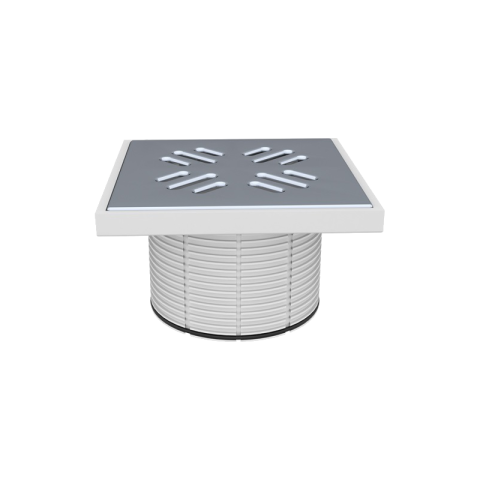 Styron magasító rozsdamentes fedráccsal - 15x15 cm - elfolyás: 110 mm - ezüst-fehér