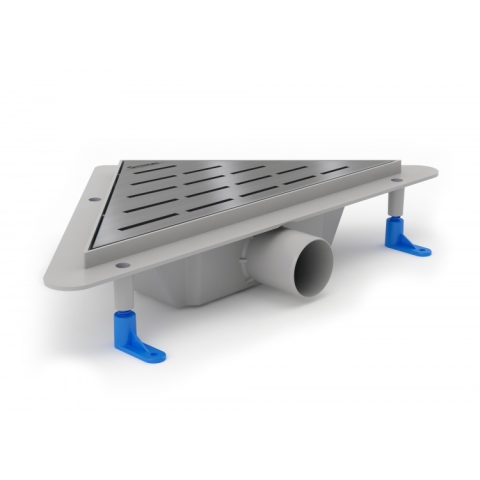 Styron STY-MF Medium Sarok zuhanyfolyóka fényes Medium rozsdamentes ráccsal alacsony, 62 mm-es beépítési magassággal. Könnyen tisztítható, kivehető ráccsal és bűzzárral.