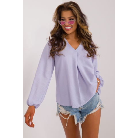 Női Blúz Sublevel MM-199225. Színe: Kék Casual női blúz bufiás, hosszú ujjakkal, ideális mindennapi viseletre és munkára. Selymes anyagból készül, amely a viszkóz és elasztán keverékéből áll, kényelmes viseletet és mozgásszabadságot biztosít. A mélykivágás eleganciát kölcsönöz a blúznak, hangsúlyozva a nyakat. Az átlagos hosszúságú blúz jól illik mind farmerhez, mind szoknyához, stílusos és kényelmes szettet alk