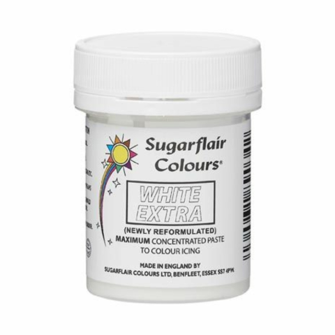 Sugarflair Max koncentrált paszta, extra fehér, 42g A Sugarflair Maximum Concentrated Paste Colours (Sugarflair maximálisan koncentrált pasztaszín) segítségével könnyedén intenzív, gazdag színt adhat fondantjának vagy marcipánjának. A színezőanyag kis