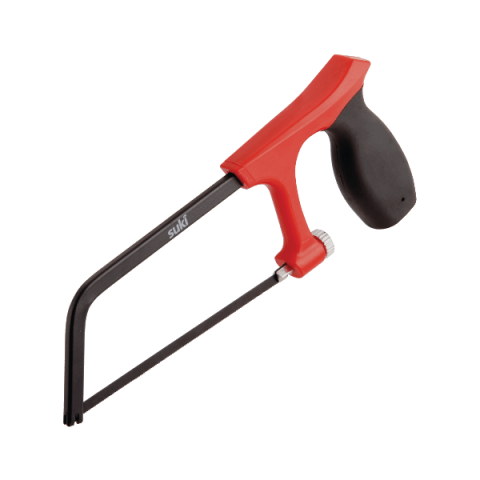 The hacksaw frame can be used for sawing steels, aluminium and PVC. Tubular steel bow, powder coated, 2-component handle, with metal sawblade.