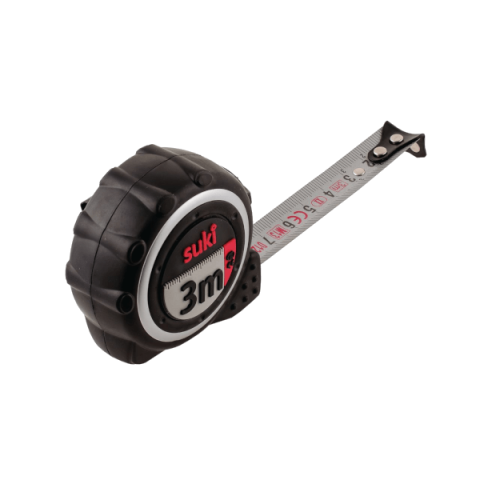 Alkalmas tárgyak és felületek mérésére. 3 m hosszú. Kétkomponensű műanyag tok TPR bevonattal. Nejlon bevonatú szalag, mindkét oldalán metrikus nyomtatással. Rögzítő
