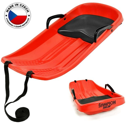 Bob szánkó - irányítás fékkarok segítségével, fékezés fékkarok segítségével, műanyagból készült, terhelhetőség: 40 kg, tömege: 1,6 kg A Sulov Champion egy minőségi bob szánkó, amely első látásra lenyűgöz mindenkit kifinomult kialakításával. A felhasznált anyagok kiváló minősége miatt a bob szánkók nagyon tartósak és rendkívül megbíz