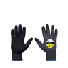 Poliamid alapanyagra ujjbegyig mártott védőkesztyű, vékony nitril mártással és gumírozott mandzsettával. Minősítés: EN 388:2016. Mechanikai követelmények: 4131X.