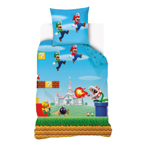 Super Mario ágyneműhuzat. A csomag tartalma: 1 darab párnahuzat: 70x90 cm 1 darab takaróhuzat: 140x200 cm Anyaga: 100% pamut