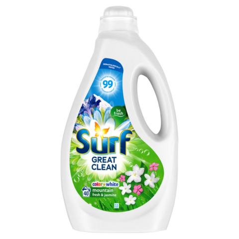 Mosógél - színes és fehér ruhákhoz, normál mosáshoz, elegendő akár 40 mosásra, űrtartalma 2000 ml Az univerzális SURF Mountain Fresh mosógél bármilyen ruhaanyagról gondoskodik. A SURF mosógélt összetételének köszönhetően fehér és színes ruhákhoz egyaránt használhatod. Hatékonyan eltávolítja a maka