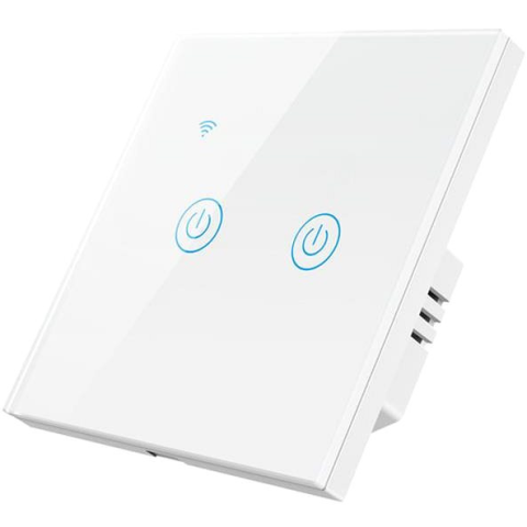 Kapcsoló - beltéri használatra, fix rögzítésű, vakolathoz szerelhető, önállóan történő működés, használható világítás, elektromos hálózat és Smart-Home vezérlésére, 2 csatornás, 10 A-es maximális áramerősség, fehér színben, anyaga üveg, WiFi 2,4 GHz hálózaton keresztül vezérelhető, Android és iOS kompatibilis, kompatibilis alkalmazások: Google Home és Tuya, mérete 86 × 86 × 34 mm (Ma×Sz×Mé) A Surtep Tuya Smart DS-101BW-2 egy okos kapcsoló, amely