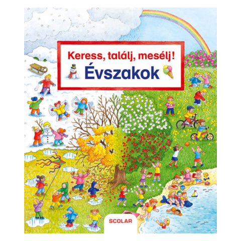 Tulipán, húsvéti tojás, színes napernyő, papírsárkány, gesztenye, töklámpás, szánkó, adventi koszorú, korcsolya – melyik évszak jut eszedbe róluk? A képeskönyv tizenegy nagy, részletgazdag képén megannyi érdekes dolgot fedezhetnek fel a kíváncsi apróságok. A többi Keress, találj, mesélj! könyvhöz hasonlóan minden oldalpár szélén kiemeltünk néhány tárgyat vagy élőlényt, melyeket a gyerekek megkereshetnek az adott oldalpár nagyméretű képén.