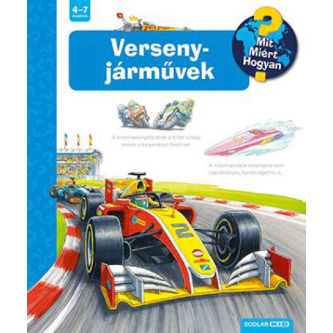 A Ravensburger népszerű Mit? Miért? Hogyan? gyermekkönyvsorozatának 55. kötetét lapozgatva az óvodások és a kisiskolások megtudhatják, milyen versenyautók léteznek, mi az a rali, milyen versenyek zajlanak vízen és levegőben. Az is kiderül, hogyan lesz valakiből autóversenyző.A már hazánkban is közkedvelt Ravensburger-játékok közé tartozó képes szakkönyvsorozat kedves illusztrációkkal, a gyerekek életkorának megfelelő információkkal ad választ a rengeteg ké
