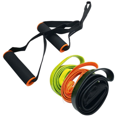 A csomag tartalmaz 3 különböző erősségű latex gumikötelet és 1 pár fogantyút.A gumikötelekkel fejleszthetjük izomzatunk valamit használhatjuk rehabilitációs célokra is.A zöld gumikötél gyenge erősségű, mérete 108 x 2,5 cm.A narancssárga gumikötél közepes