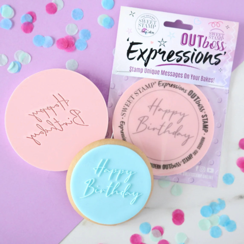 1 kép Sweet Stamp 3D fondant topper mintázó, Modern Happy Birthday, 8,5cm