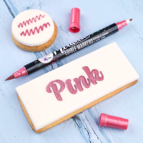 Kiváló minőségű és gyorsan száradó ehető filctoll. A 2 az 1-ben toll.Adj hozzá részleteket fondanthoz, királyi cukormázhoz, cukorvirágokhoz és sok más ehető felülethez.Használd a 2,5 mm-es hegyet a normál munkához, a 0,5 mm-eset pedig