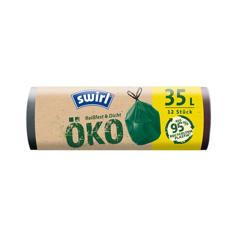 A Swirl ökoszemeteszsákok űrtartalma 35 liter, és egy csomag 12 darabot tartalmaz. A kiváló minőségű, 3 rétegű fóliának köszönhetően szakadásbiztosak és nem szivárognak. A szemeteszsákok 95%-ban újrahasznosított anyagból készülnek, így hozzájárulnak a hulladék mennyiségének csökkentéséhez. Továbbá folyadékálló aljjal rendelkeznek, amely megakadályozza a folyadékok kifolyását.