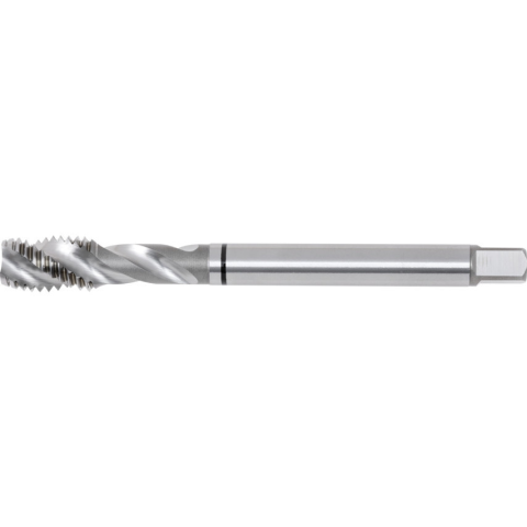 Csavart hornyú gépi menetfúró HSS-E fényes kivitel Zsákfuratokhoz. Kúpos bevezető kialakítása a DIN C form szerint. Menetfúrási tűrés: 6H. A fekete gyűrűs menetfúrók egyedülálló általános célú jellemzői garantálják a magas termelékenységet azáltal is, ho