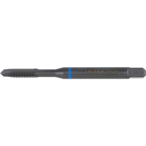 1 kép SWISS M5x0.8 kék gyűrűs HSS-ev egyenes hornyú gépi menetfúró - oxidált