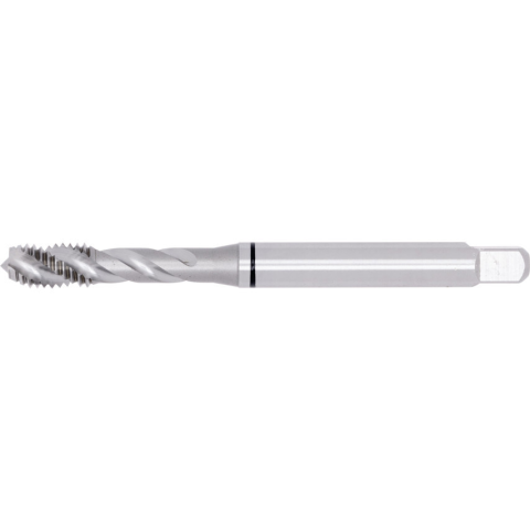 Csavart hornyú gépi menetfúró HSS-E fényes kivitel Zsákfuratokhoz. Kúpos bevezető kialakítása a DIN C form szerint. Menetfúrási tűrés: 6H. A fekete gyűrűs menetfúrók egyedülálló általános célú jellemzői garantálják a magas termelékenységet azáltal is, ho