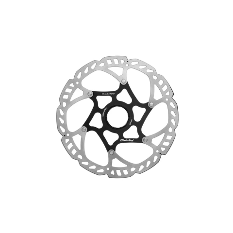 A SwissStop saját fejlesztésű és gyártású centerlock rögzítésű, alu bakos féktárcsája. Minden szinterezett és organikus fékpofával használható.