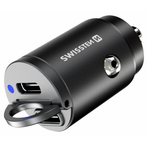 Swissten 20111800 2x USB-C Szivargyújtós töltő 30W - Fekete (20111800)
