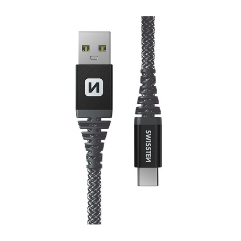 Adatkábel - 1,5m-es csatlakozókábel, male csatlakozók: 1× USB-A + 1× USB-C, egyenes végződés A kiváló minőségű Swissten Kevlar USB/USB-C 1.5m antracit adatkábel leglényegesebb jellemzői A minőségi Swissten adatkábel nem hiányozhat a felszerelésedből, ha több eszközöd van 1. male csatlakozó sz