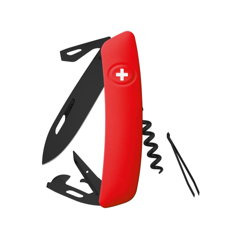 Swiza D03 All Black - Red Formabontó alakjával és csúszásmentes puha markolatával a Swiza a legkényelmesebb svájci bicska, amit valaha gyártottak. Ergonomikusan ívelt markolatának köszönhetően a szerszámok könnyebben hozzáférhetőek jobb és bal kézzel