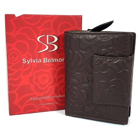 1 kép Sylvia Belmonte rózsa mintás, sötétbarna, széles nyelvű női bőr pénztárca RO03