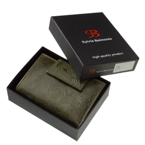 1 kép Sylvia Belmonte virág mintás, khaki, széles nyelvű női bőr pénztárca IM03