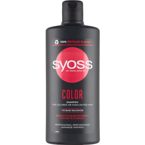 Sampon nők számára - hagyományos sampon, festett, normál és sérült hajra ajánlott, fényesítő, hidratáló, hajsimító és regeneráló hatás, vitaminos, 440 ml-es kiszerelésben A SYOSS Color sampon alaposan tisztítja meg és megbízhatóan regenerálja a hajszálakat. A termék a festett haj számára tervezett prémium hajápoló termékcsalád része. Sokáig ragyogó vele a festett hajsz